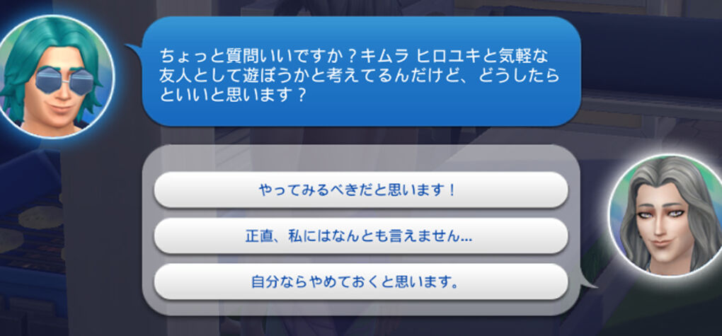 ちなみに環境保護反対派との議論は、他のシムとおしゃべりしながらでもできるようです。
