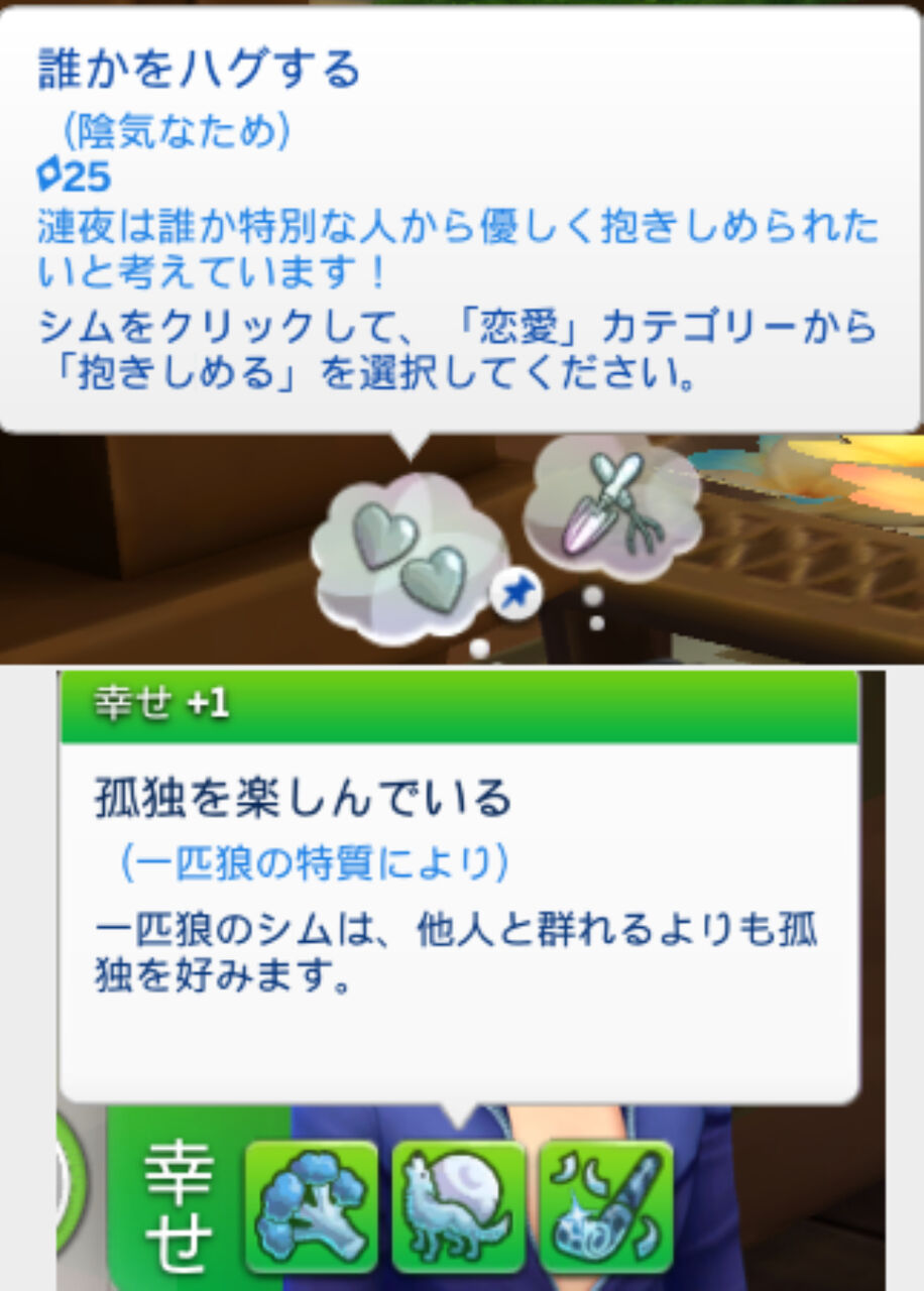 「陰気」ってこんな欲望出したりするんですねえ~!「陰気」のシムちゃんはさみしがりやさんなんでしょうか?