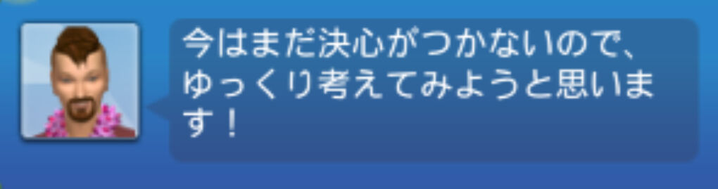 ルール:主人公シムの行動可否に迷った場合は、判定ロール(自分に説明した時、納得できるか)で判断する。