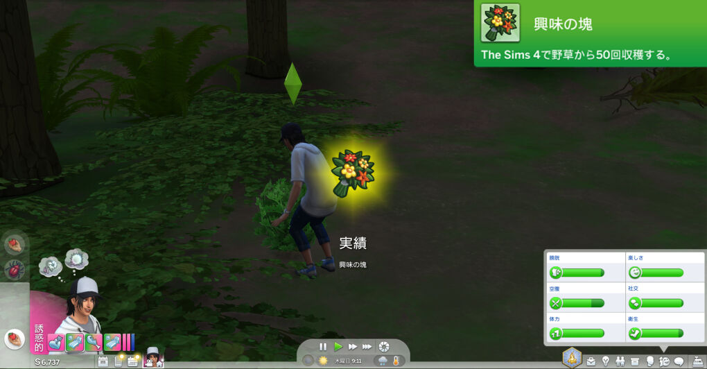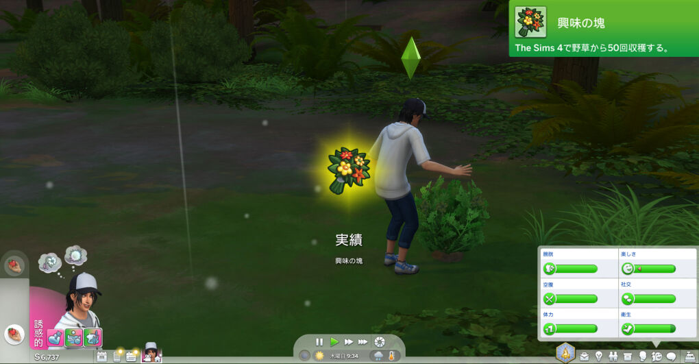 食事が済んだのでそこらへのハーブをむしっていると…おっ!たくさん野草を摘んだようで実績が解除されましたね!50個も摘んだなんてすごいなあ~~!