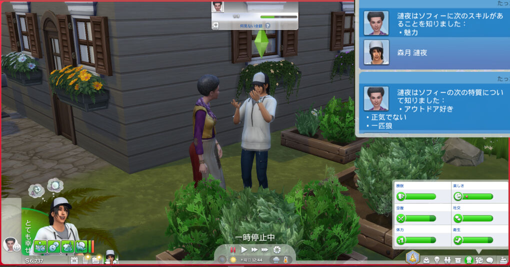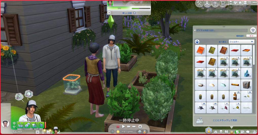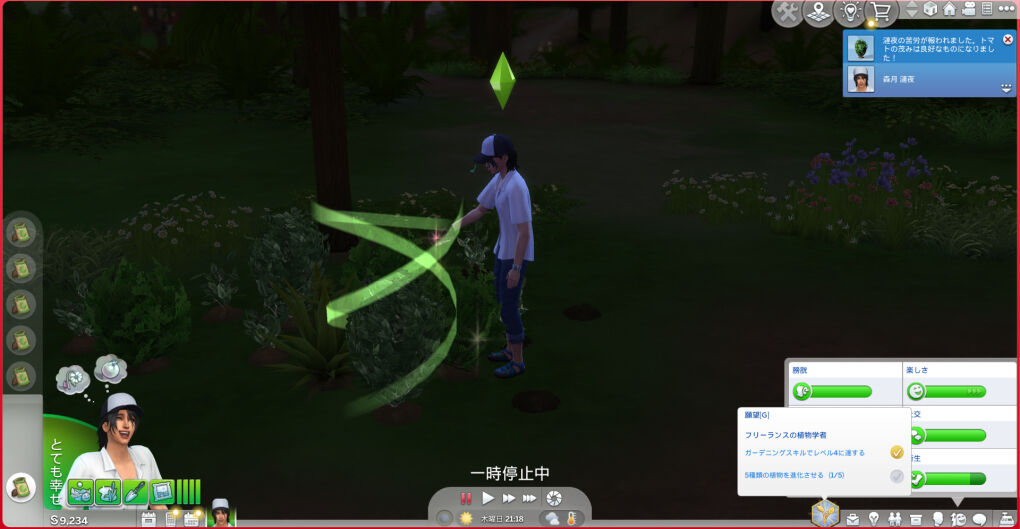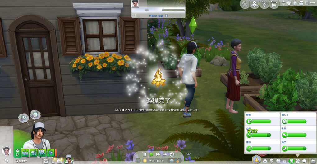 ガーデニング願望に変更し、ハーブや花等もろもろ植える→水をやります。ここでたぶんおそらくガーデニング願望の第一段階のタスククリア。