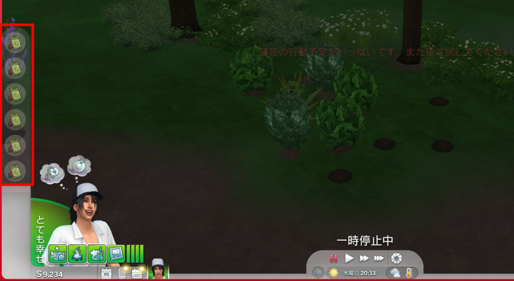 一時停止した状態で「肥料をやる」行動を行動可能数限界まで貯めて~