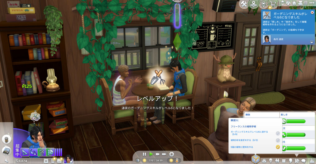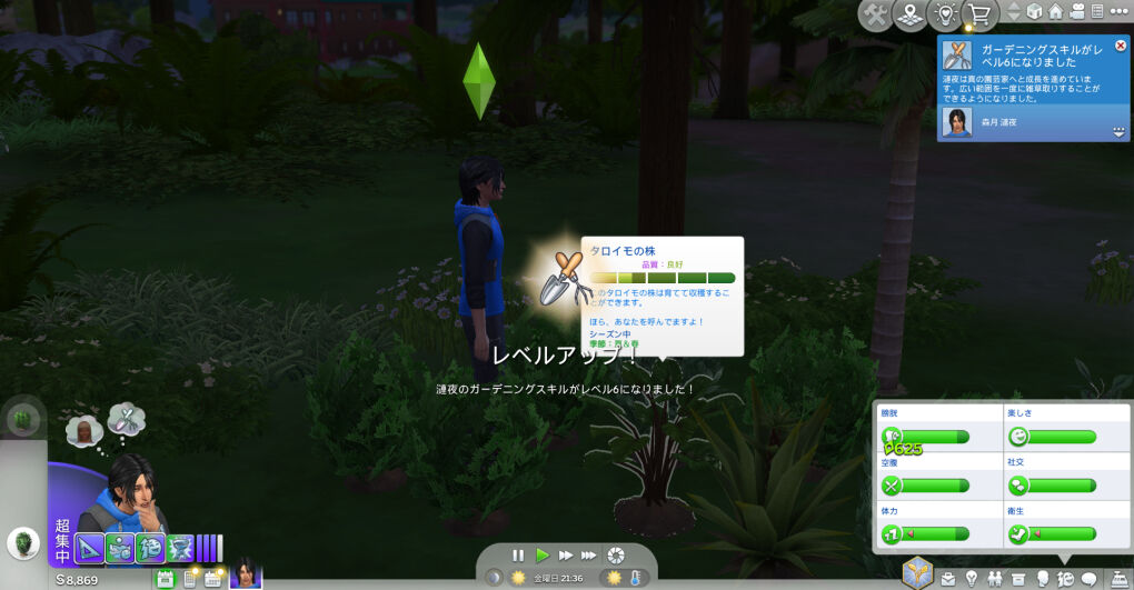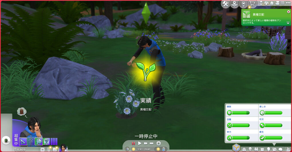 おそらく、隠者シムはハーブ薬作成や釣り、ガーデニング等の自律が高く設計されてるっぽくて、ソーシャルの自律がなかなかないんですよね~~!とはいえ、ハーブ薬どんだけ作るねんという感じではありますがw
