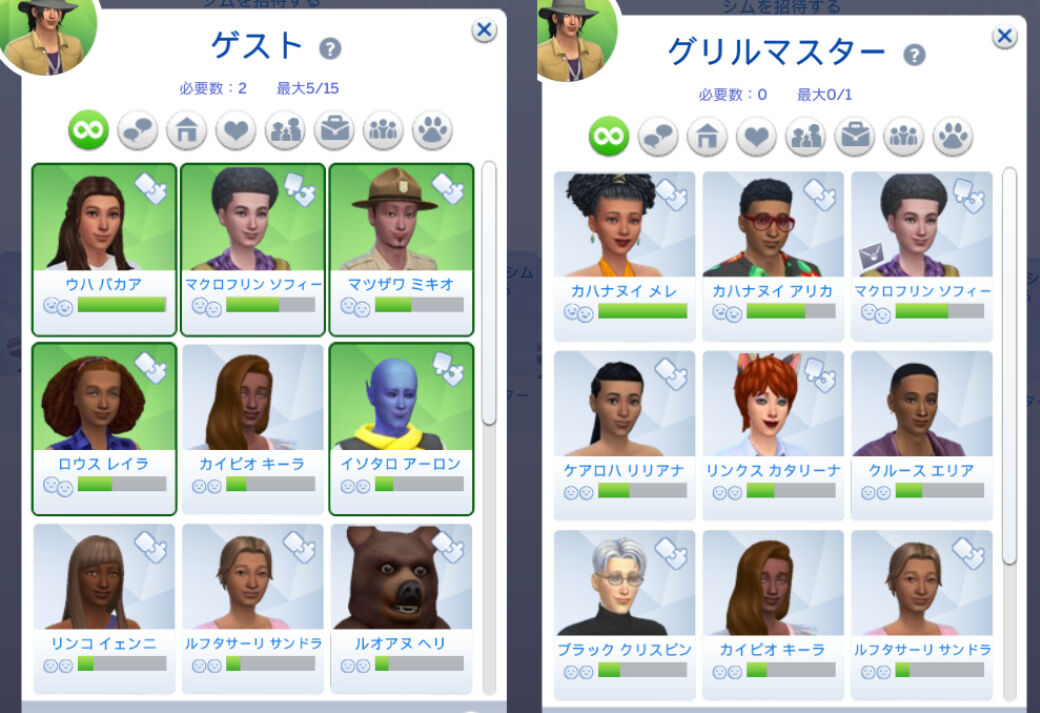 ゲストはお友達を何名か呼んで~グリルマスターという人員も選べるようだったのでメレさんを選んでおきました!