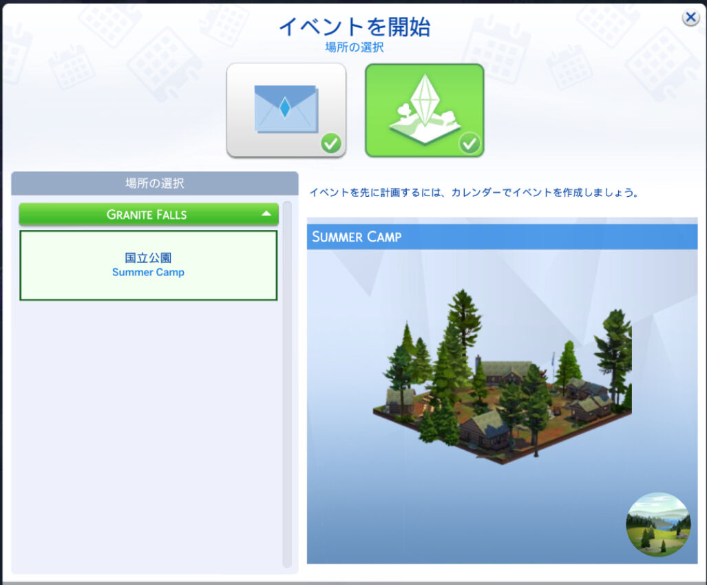 場所の選択は国立公園しか出てなかったので、こちらをチョイス。