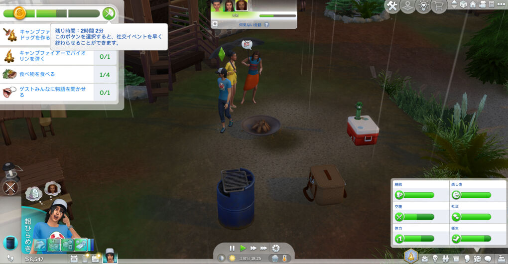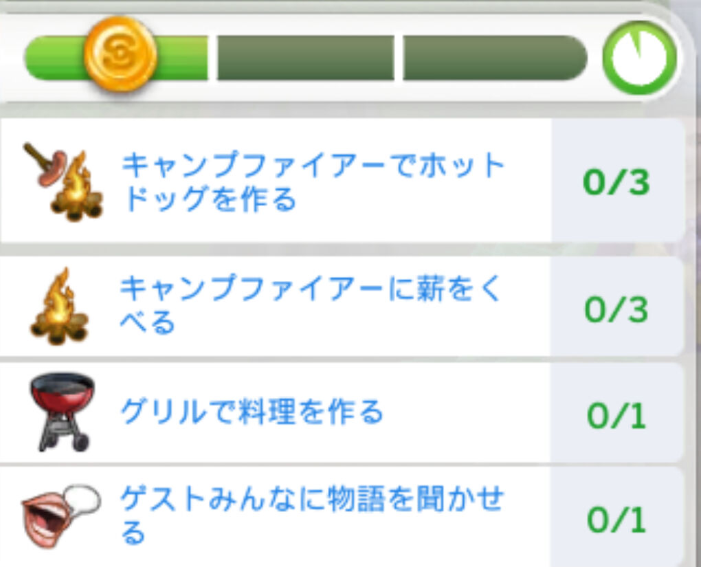 パーティータスクはこちらです!ホットドッグを三つも作らないといけないのが大変ですが、焼肉焼いてみんなで食ってお話する、まさしくバーベキューパーティーみたいな感じです