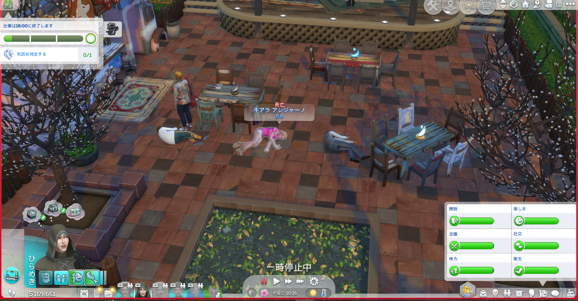 あ!タウニーさんなんだ~~!よかった!…というとちょっと不謹慎ですがw死体役のエキストラさんが用意されて配置されています。そこら辺は医者キャリアとかと同じ感じですね!医者キャリアも患者役のタウニーさんを相手に往診したりしますもんねえ