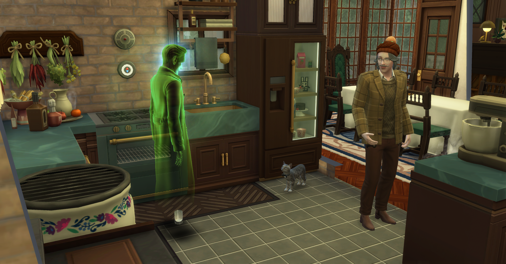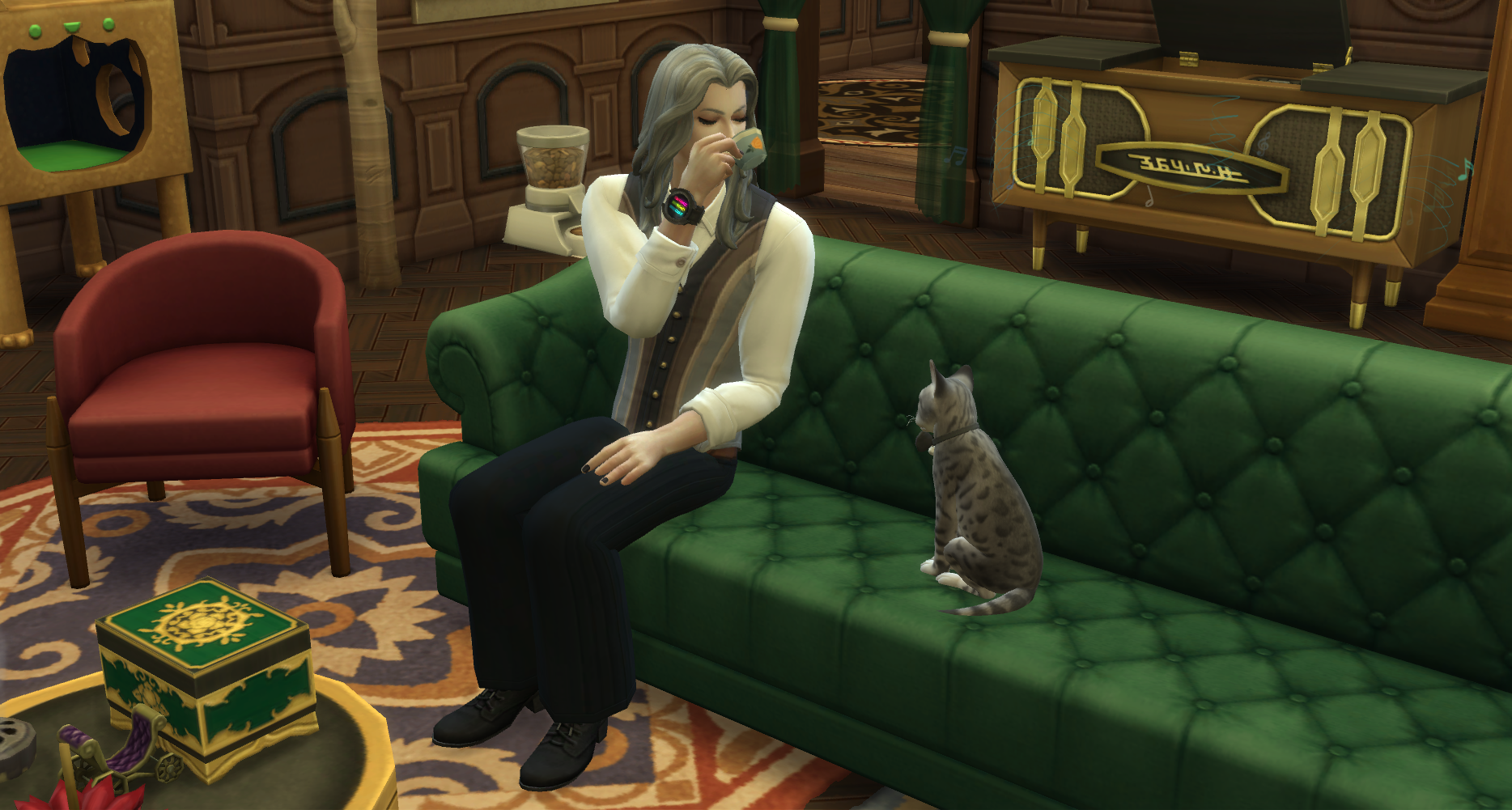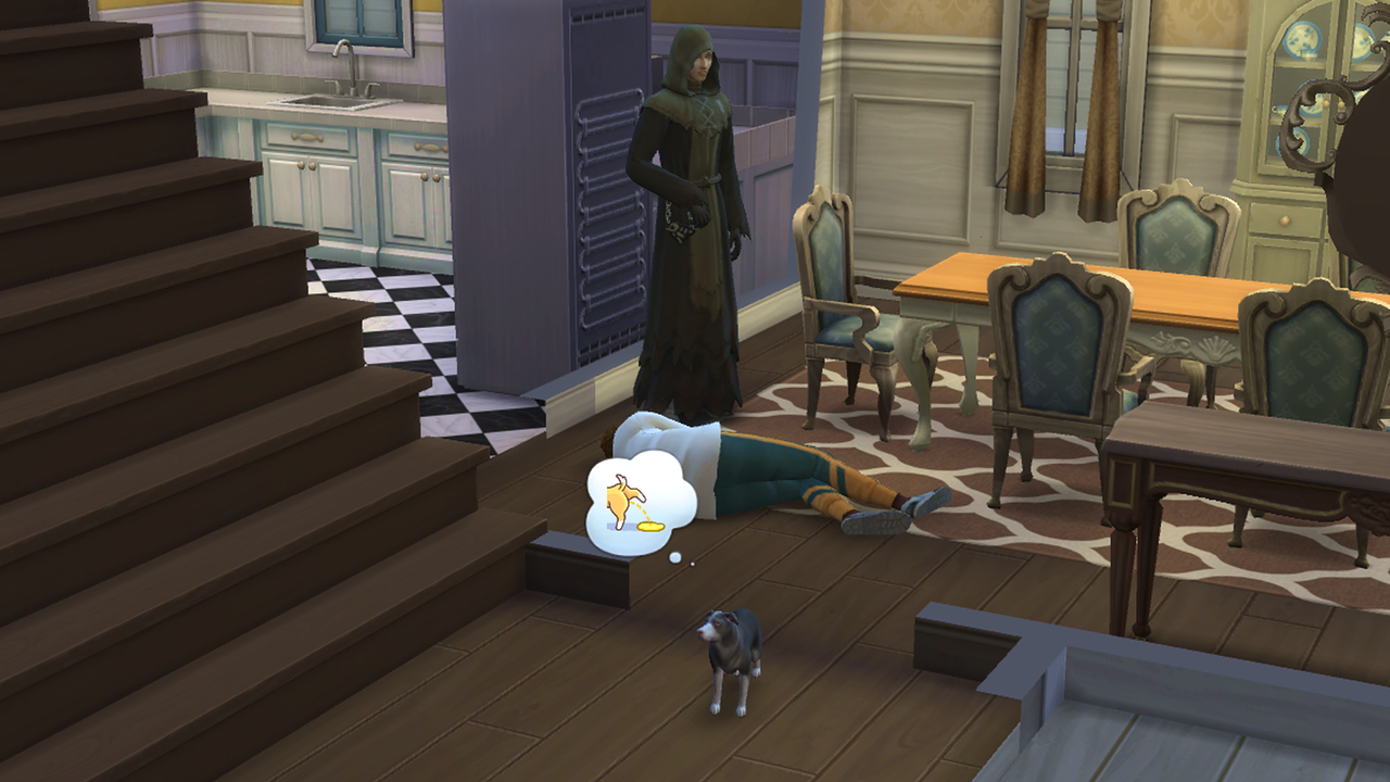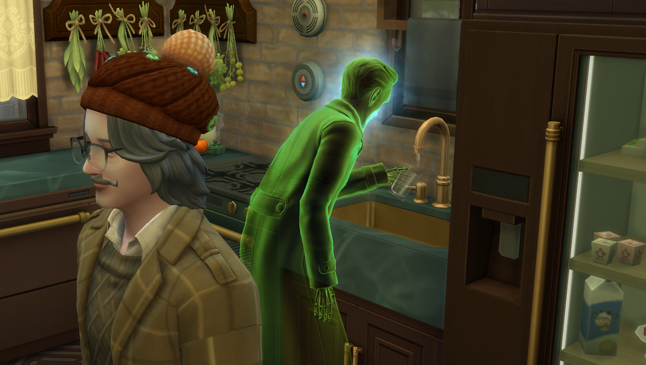ええ?wウェイロンさんって喉が渇くんですか?w新くんちに遊びに来たギドリーさんがお茶を飲んでたことがあったので、ゴーストが飲み物を飲むことは知ってたんですが…wウェイロンさんがもし喉渇くタイプのシムだったら、謎の商人の職業めっちゃ大変じゃないですか?w夜中ずっと墓地に立ってなきゃいけないですよw今までどうしてたん?w