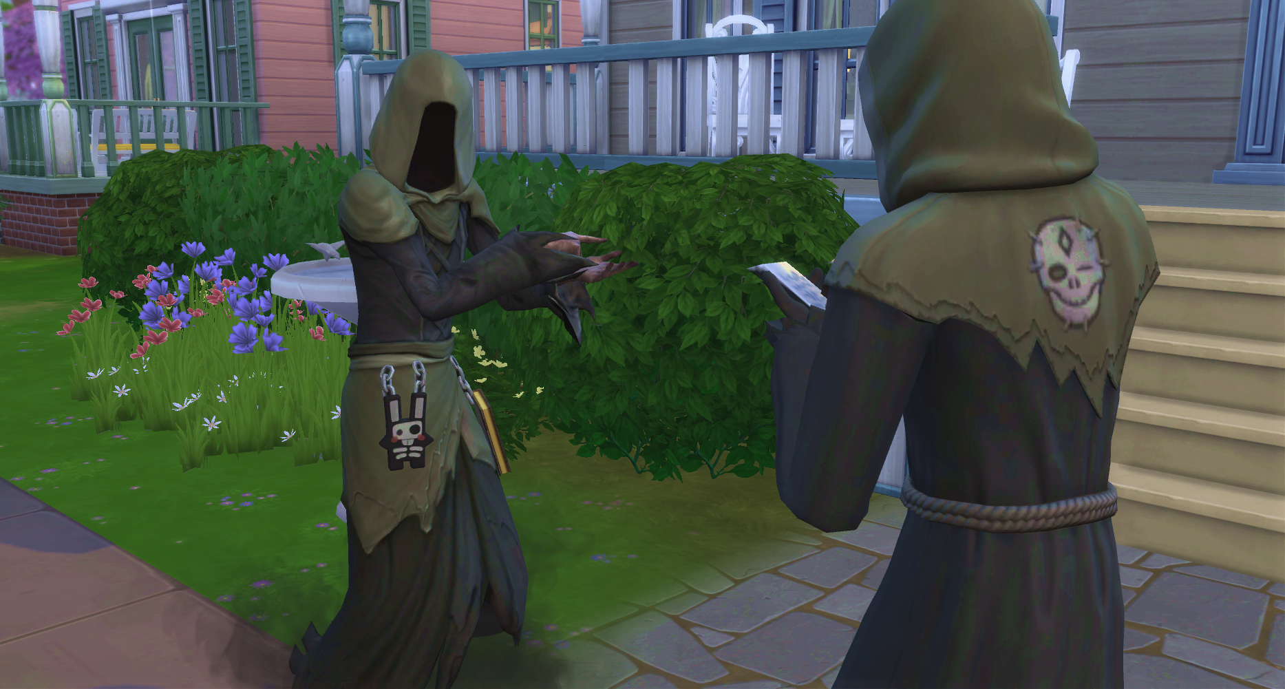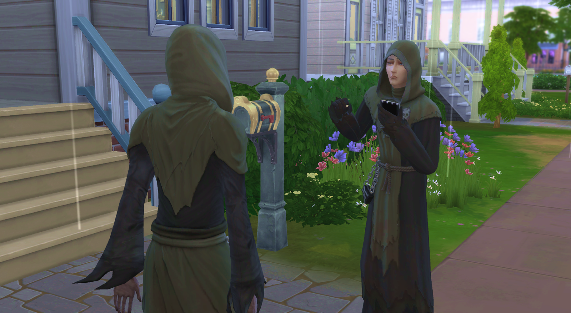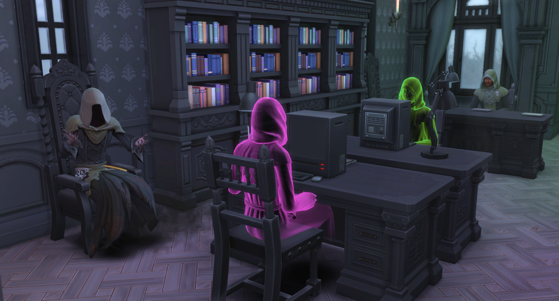ええ?wウェイロンさんって喉が渇くんですか?w新くんちに遊びに来たギドリーさんがお茶を飲んでたことがあったので、ゴーストが飲み物を飲むことは知ってたんですが…wウェイロンさんがもし喉渇くタイプのシムだったら、謎の商人の職業めっちゃ大変じゃないですか?w夜中ずっと墓地に立ってなきゃいけないですよw今までどうしてたん?w