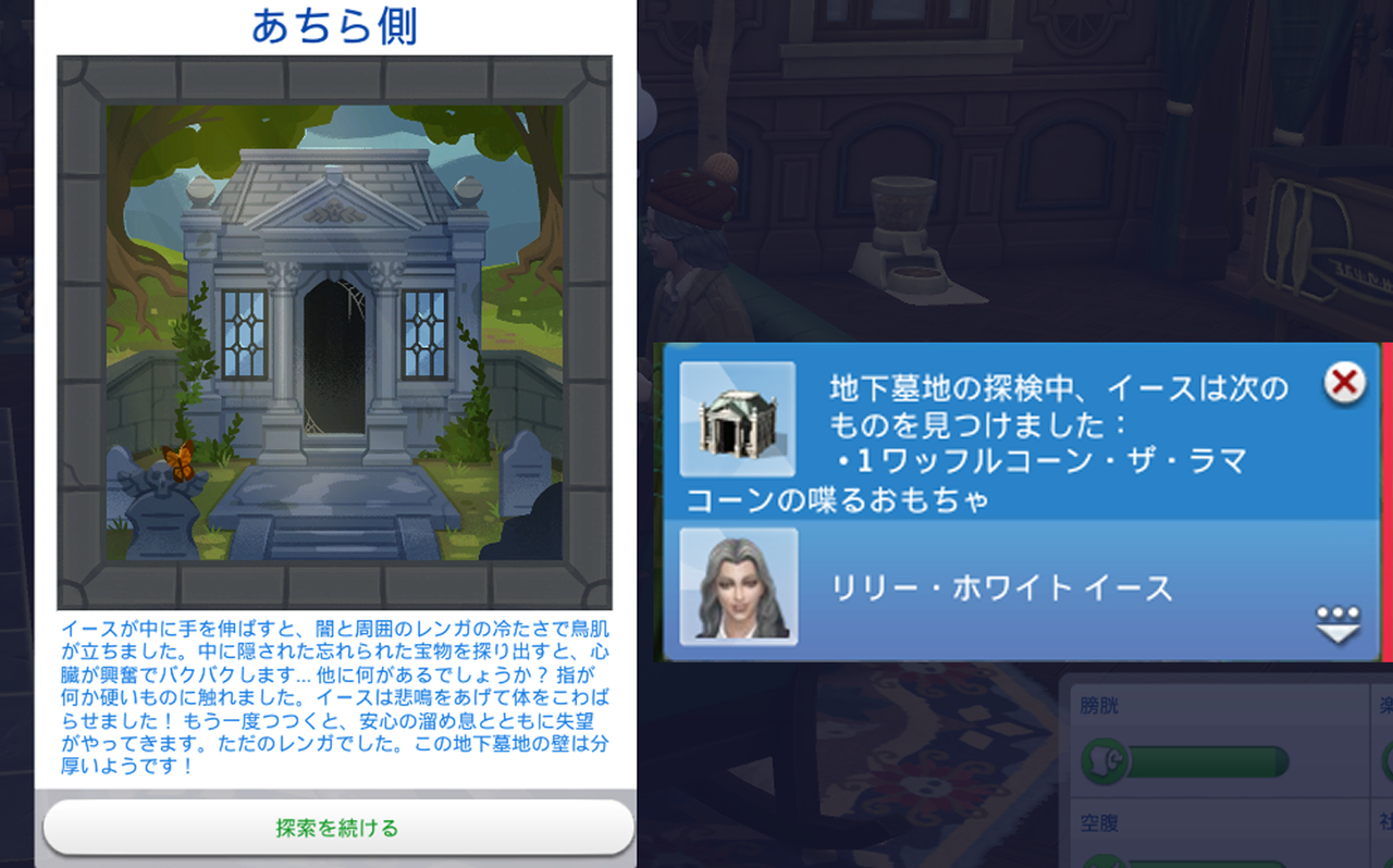 ティアが井戸を調べに行っている間、イースはアリスさんのクエストのために、地下墓地を冒険していました。