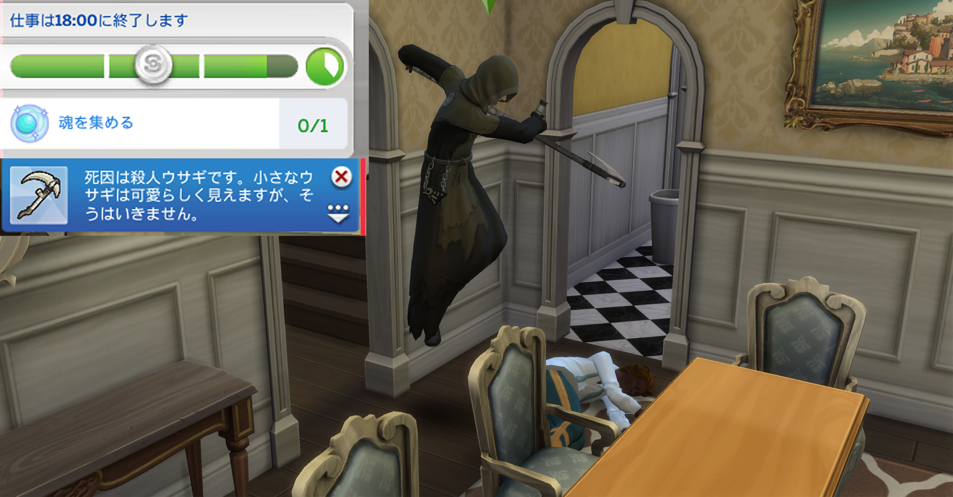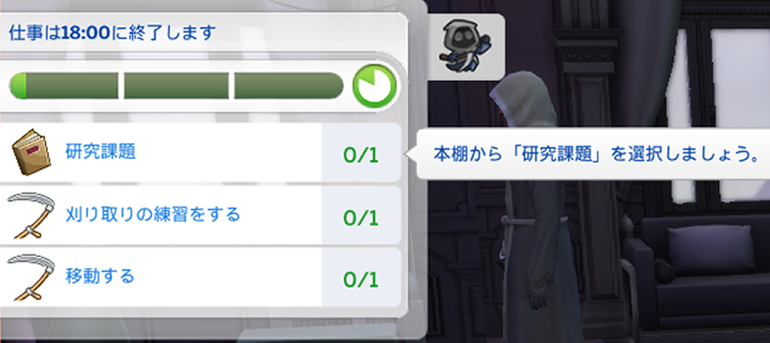 実はこの「研究課題をする」「刈り取りの練習をする」「大鎌の手入れをする」の項目は現場に行く前の準備なんですよね~wおそらく前回魂の刈り取りに失敗したので、準備はこうやってやるんですよ~と教えてくれているんだと思いますw次は失敗しないようにちゃんと教えてくれるんですねえwこの会社めっちゃ優しいw