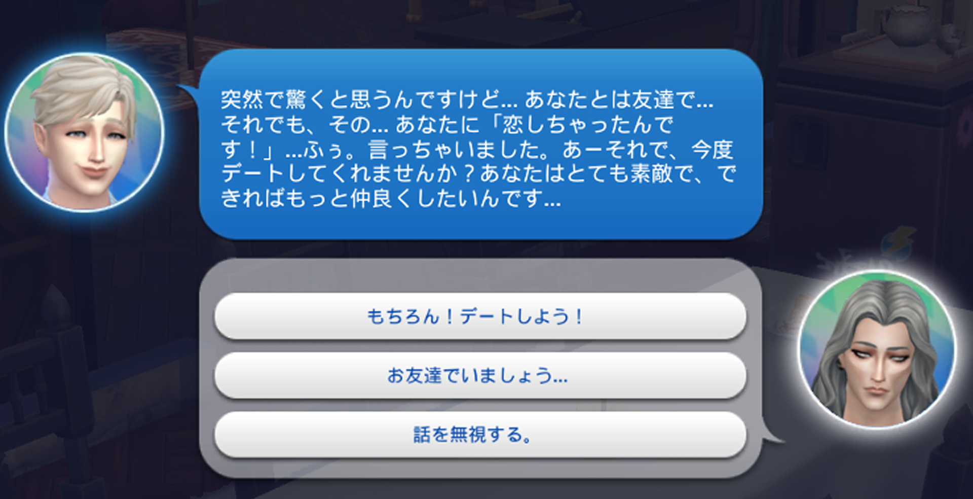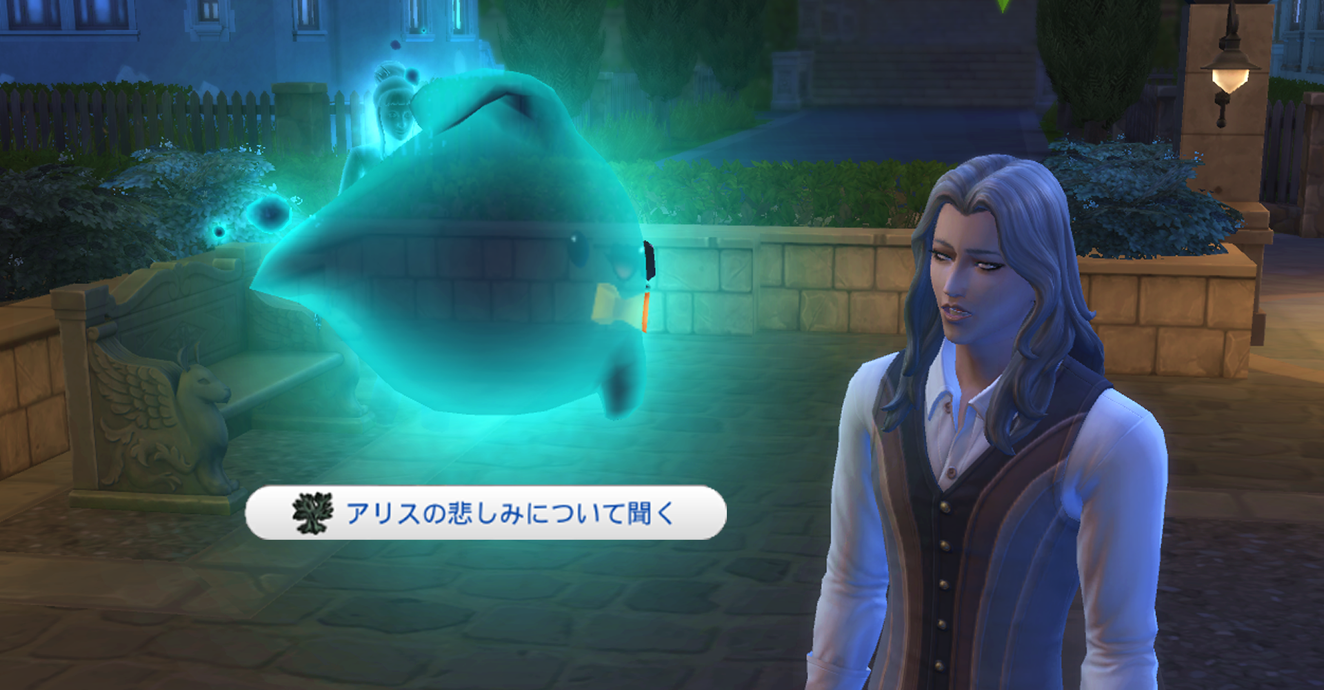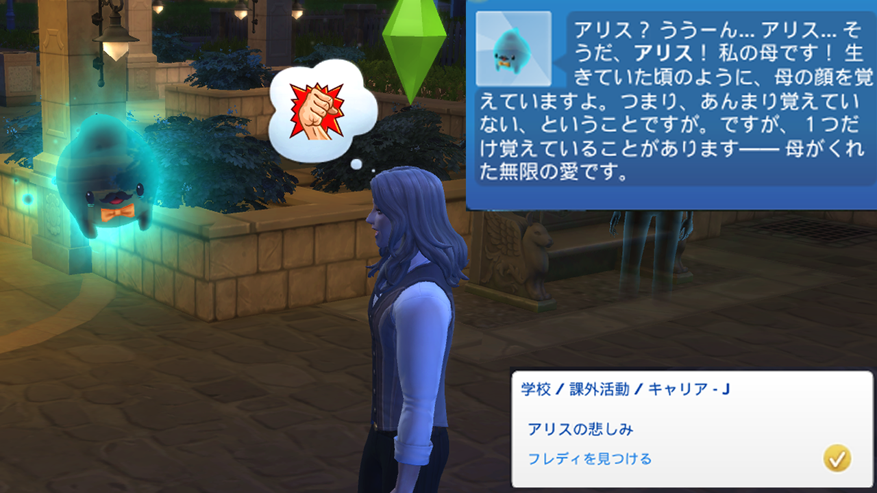 クリックしてみると「アリスの悲しみについて聞く」というコマンドが出ていました!やっぱりこの子がフレディさんですね!?