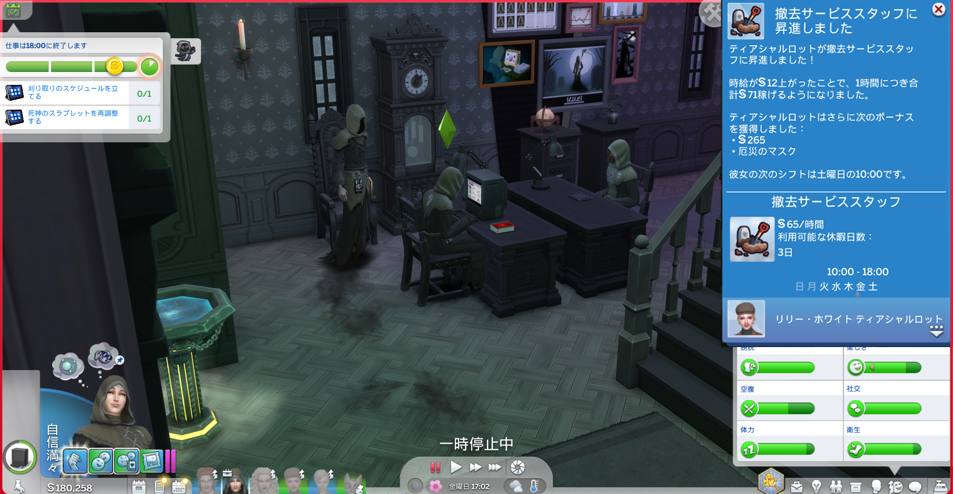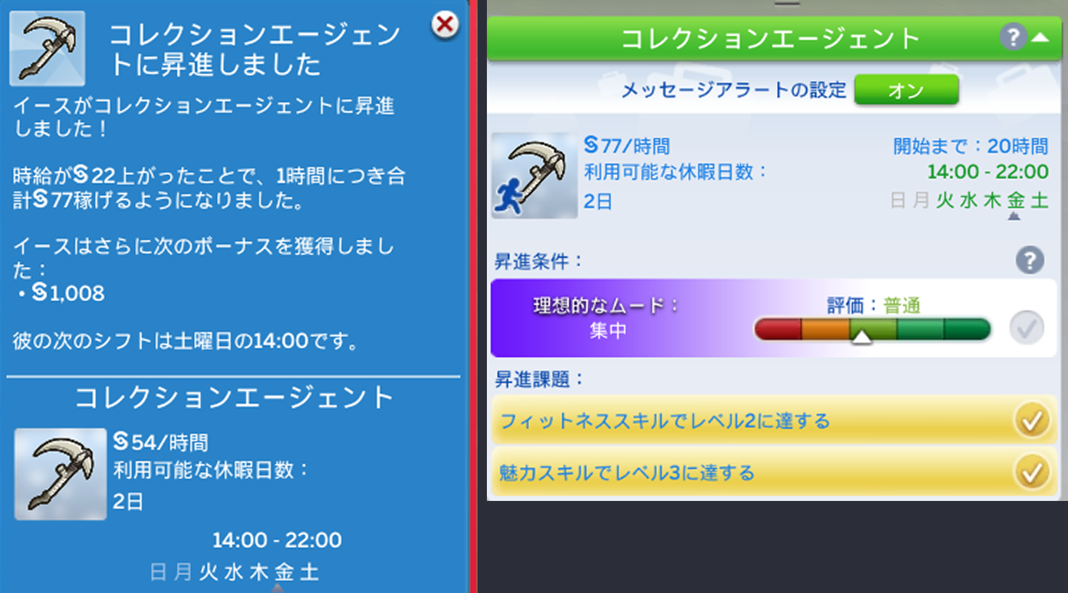 フィットネスと魅力スキルがいるんですねえ。どちらもティーンの時に自然に上がっていたものなので、次の昇進もすぐいけるかもしれませんね!