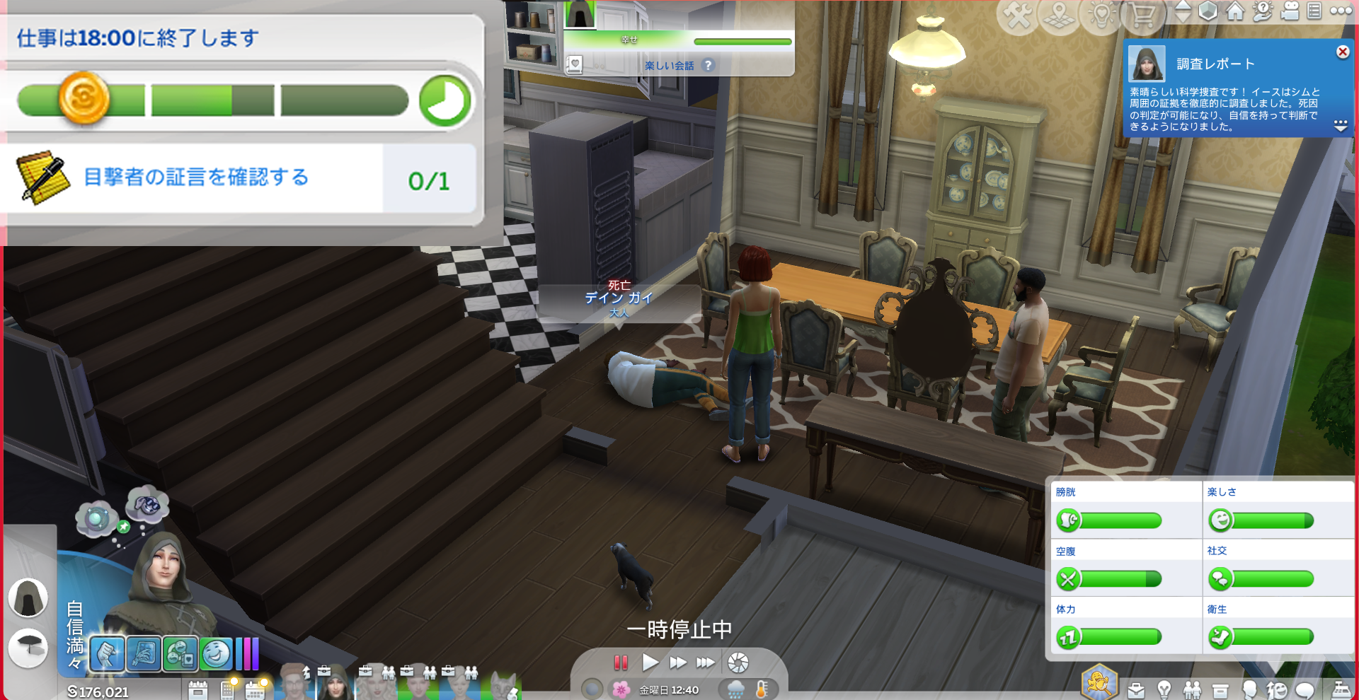 次は「目撃者の証言を聞く」フェーズです。パンケーキ家で倒れている謎の男w